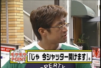 そのまま商店街を歩いていくと、シャッターの閉まったお店があり、いきなりモヤっているモノを大竹が発見。