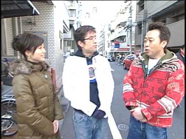 晴れた日なのに、わざわざ日陰の寒そうな場所にスタンバっているさまぁ~ず。