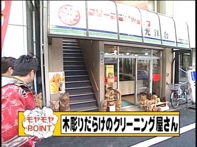 木彫りがでしゃばるクリーニングショップ光洋舎。