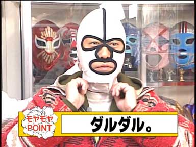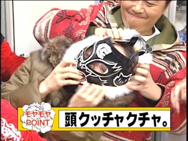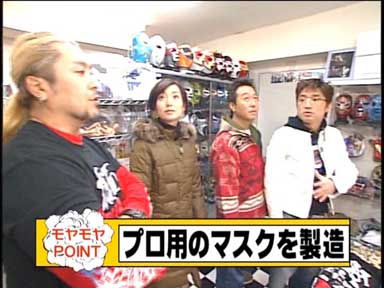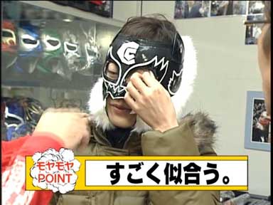 三村がデストロイヤーのマスクを試着。