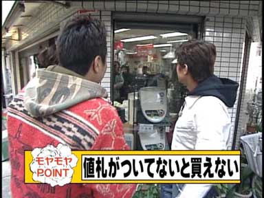 店主の子供が出てくると、会話そっちのけで子供が着ているタートルネックが気になっちゃう大竹三村。