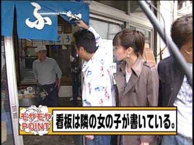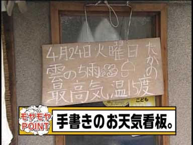 すると店先に手書きの天気予報看板が下がっていることにすぐ気が付く3人。