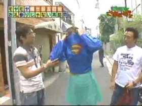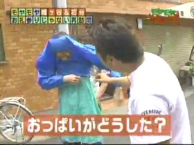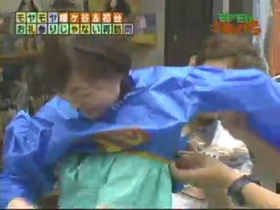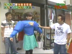 本来子供用なのだが、おじさん2人はとても着れそうにないので、大江がチャレンジ。