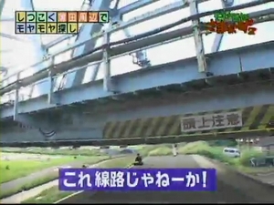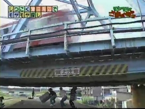 電車が通る下でわちゃわちゃ動く3人