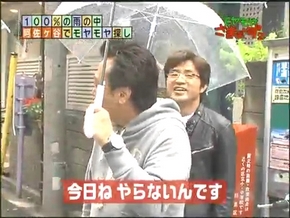 本来ならロケ中止レベルの雨なので、一行は早くお店に入りたい。