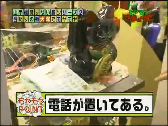 おもちゃを扱う部屋の入り口は置物でとうせんぼしてあり、店主呼び出し用の電話機が置いてあるのだ。