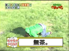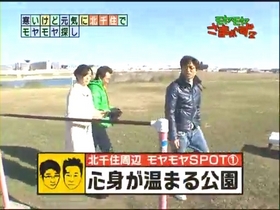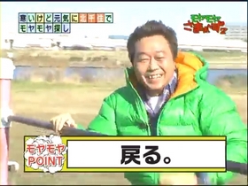 土手の斜面を見て、三村がどうしても土手を滑りたいというので、ダンボール代わりのカンペ用スケッチブックの紙を敷いて滑ろうとするのだが、これが全く滑らず、結局、